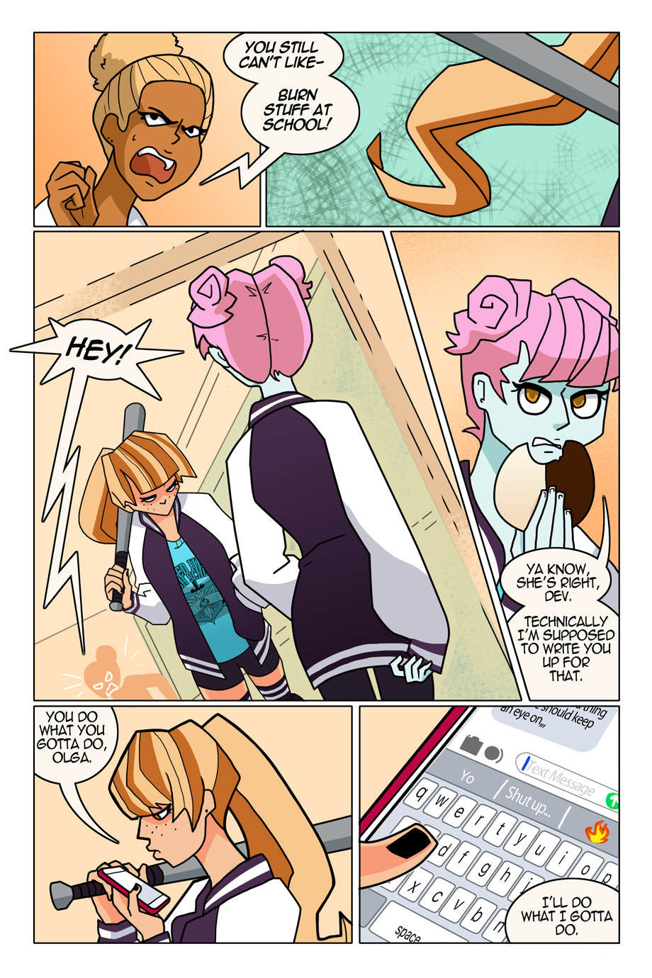 Olga is also on the softball team--- we saw her in the background of a softball practice on a page back in issue 3... over 200 pages ago. ;w;